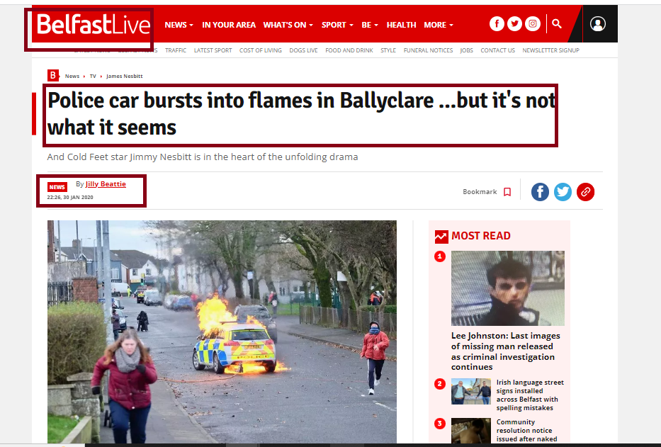 وخلال البحث وجدنا أن المقطع الترويجي للفيديو منشور في موقع belfastlive بتاريخ 30 يناير/ كانون الثاني 2020 تحت عنوان " Police car bursts into flames in Ballyclare ...but it's not what it seems".
