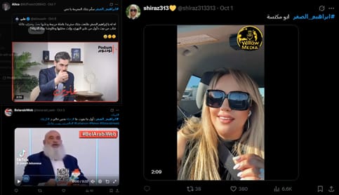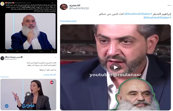 كما انتشرت في 7 أكتوبر/ تشرين الأول 2025 منشورات أخرى تتضمّن خطاباً مسيئًا وتحريضيًا، منها ما نشره حساب @alkhazaali313h: "الشاب المسيحي الماروني المنفخ، خنزير الدرة إبراهيم إجري الصقر مش رح يهدا حتى يفقع.. وما بعرف كيف 'رح يفقع' #طز_فيك_وبسمير"،