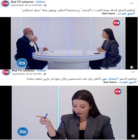 أمّا على فيسبوك، فقد أعاد الحساب الرسمي لقناة Red TV نشر مقاطع من الحلقة على صفحته بعنوانين مختلفين. نُشر المقطع الأول في 30 سبتمبر/ أيلول 2025 بعنوان "إبراهيم الصقر: #ميشال_عون أخطر رجل على المسيحيين وكان ببيع مار مارون ليقعد ببعبدا #عمق_الحدث"، وسجّل 354 مشاركة و606 تعليقًا. أما المقطع الثاني، الذي نُشر في 29 سبتمبر/ أيلول 2025 بعنوان "إبراهيم الصقر يُصعّد بوجه الحزب: بـ'الرينجر' رح يسلموا السلاح.. ووفيق صفا 'عميل إسرائيلي'"، فحصد 1.2 ألف تعليق و148 مشاركة حتى لحظة إعداد هذا التقرير.